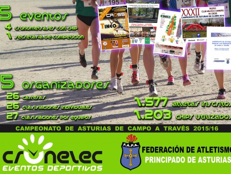 Con el cross de La Morgal (Llanera) del pasado domingo 14 de febrero se ha puesto punto y final a la temporada asturiana de campo a través 2015/2016, donde hemos podido prestar nuestros servicios en los 5 eventos que lo componían.